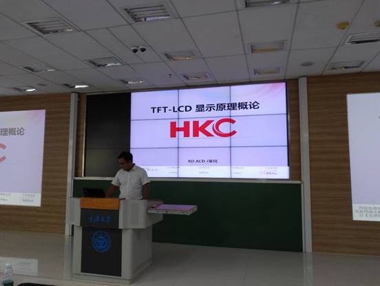 2019年6月1日下午,重庆惠科金渝光电科技有限公司研发部技术骨干朱厚毅课长和吴川主任工程师在主教213为研究生带来了“Array工艺制程”和“Color Filter工艺制程”两个报告,详解介绍了TFT-LCD液晶显示面板制作流程中两个关键工艺环节的基本原理、设计理论、材料选择、成本考量、质量检测等多个模块,使同学们对TFT-LCD液晶显示面板制作过程中光学原理的实际应用有了更加深刻的理解。