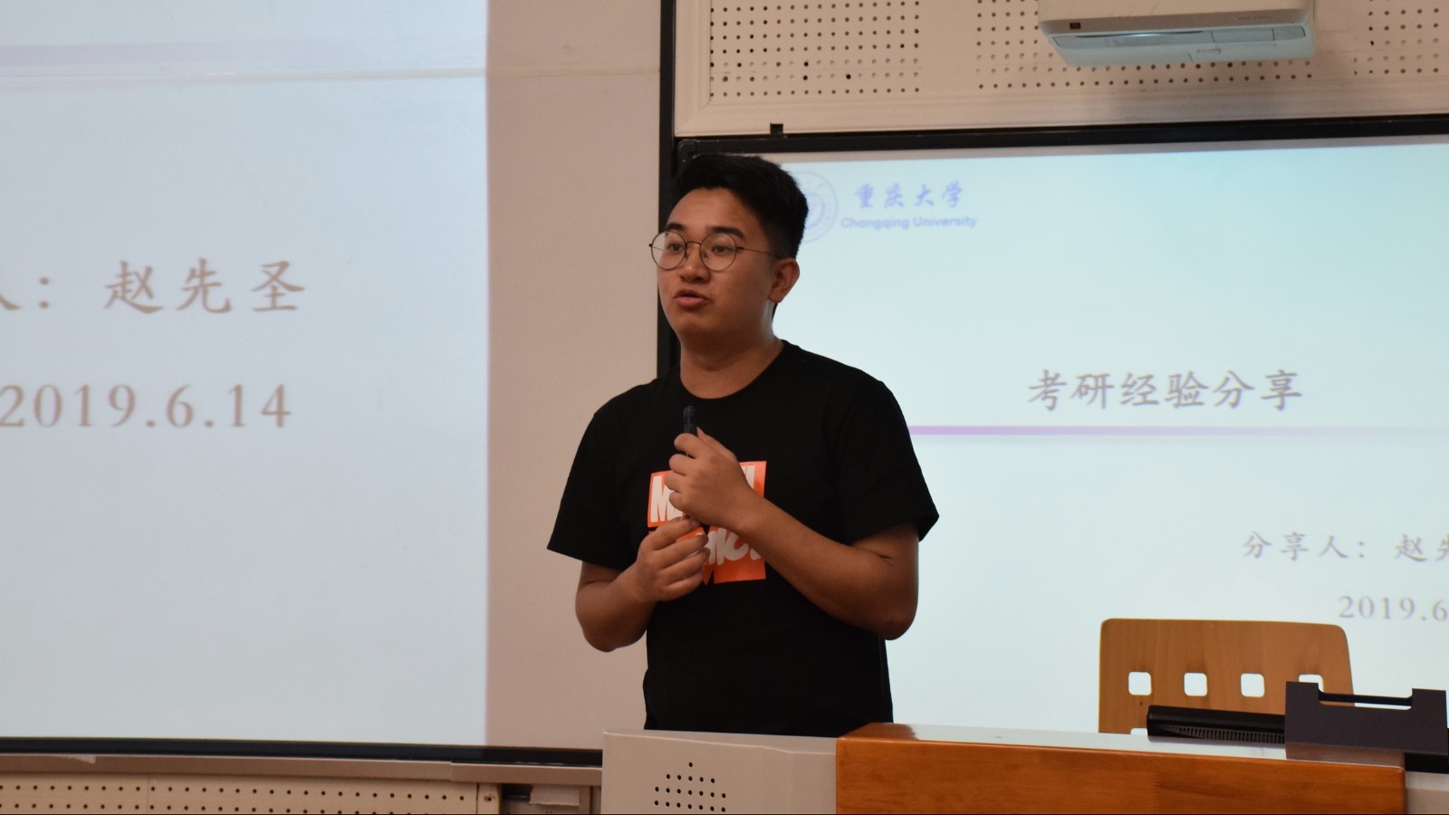 接下来,赵先圣向17级的同学分享了他本人的考研历程。赵先圣指出,我们应该明确自己考研的目的,这样才能更好的坚持下去。学长告诉我们,去年报名参加考研的有96人,成功坚持到考试的大约有一半左右,最后有37名同学成功上岸。成功率为37%左右。但如果能坚持到最后,成功率就是70%左右。所以,在考研的过程中,坚持是一项非常重要的品质。