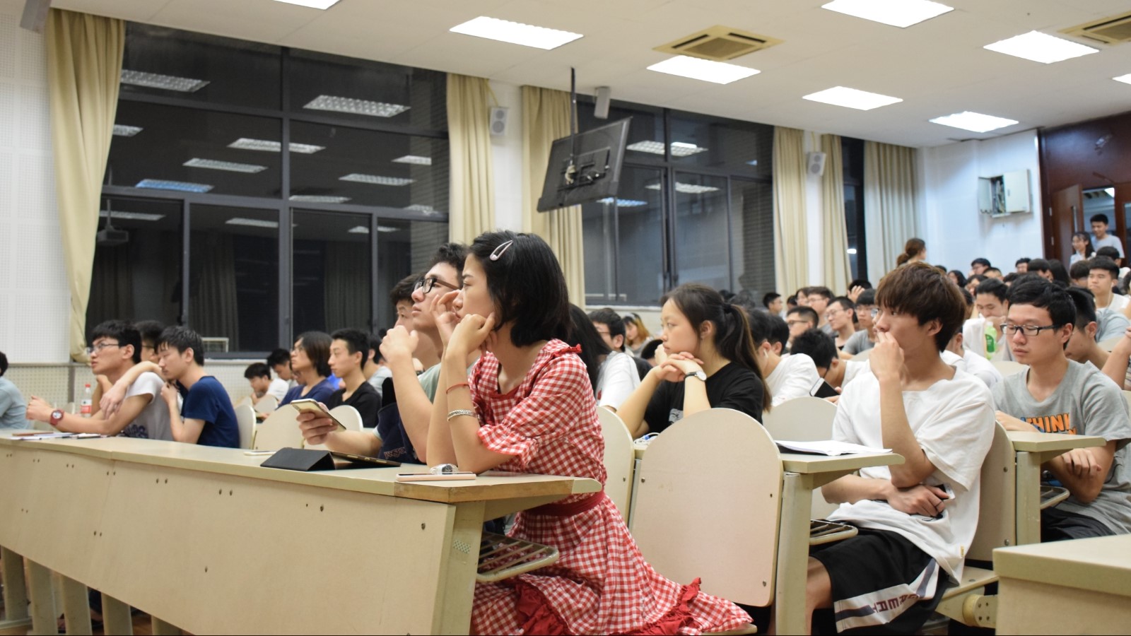 6月14日晚8点,太阳成集团tyc122ccvip2017级全体同学在D1337参加了年级大会暨学业经验交流会。本次大会由蒋晓红老师主持,并邀请了肖宁等六位2015级(大四)的优秀学长参与学业经验交流。在考试周即将来临的前一周召开大会,一方面是向同学们传达关于期末复习备考期间的重要事项;另一方面,则由优秀的大四学长们来给大家“现身说法”拨云见日般地给低年级同学展示他们的成长历程。